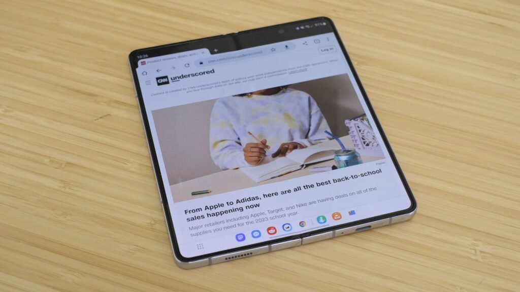 The bottom of the screen has a handy taskbar that makes it easy to have multiple apps open. Although the device does not include it by default, it’s compatible with Samsung’s S Pen stylus, a fantastic tool for drawing and note-taking, setting it apart from other foldable devices.